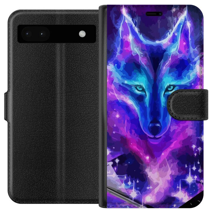 Plånboksfodral för Pixel 6a med Neon Varg -design. Fodralet kombinerar stil och funktion – ett slitstarkt mobilskal som skyddar mot repor och stötar samt praktiska kortfack på insidan.