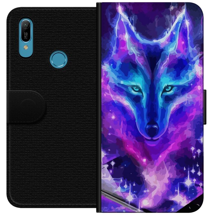 Plånboksfodral för Y6 (2019) med Neon Varg -design. Fodralet kombinerar stil och funktion – ett slitstarkt mobilskal som skyddar mot repor och stötar samt praktiska kortfack på insidan.