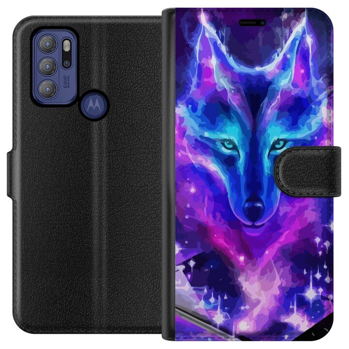 Plånboksfodral för Moto G60S med Neon Varg -design. Fodralet kombinerar stil och funktion – ett slitstarkt mobilskal som skyddar mot repor och stötar samt praktiska kortfack på insidan.