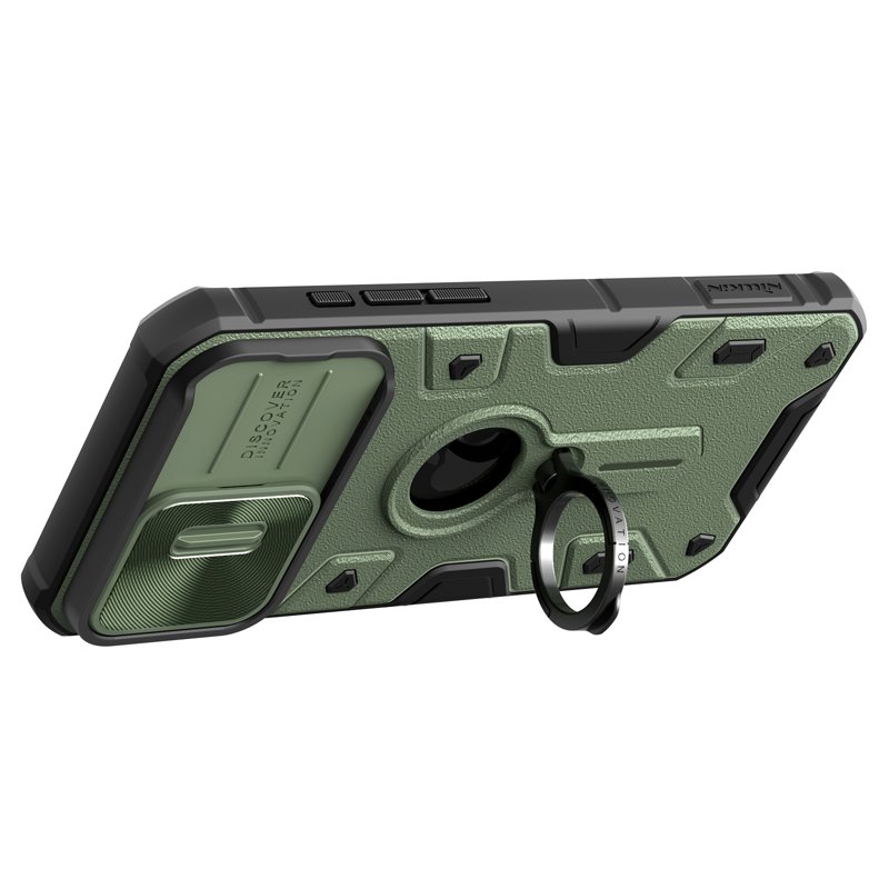 CamShied Armor-fodralet är perfekt för utomhusälskare. Det är tillverkat av miljövänligt TPU och PC-material. Fodralet erbjuder pålitligt skydd med en unik design som skyddar både kamera och integritet. Med en praktisk ringhållare kan du enkelt använda din enhet handsfree.
