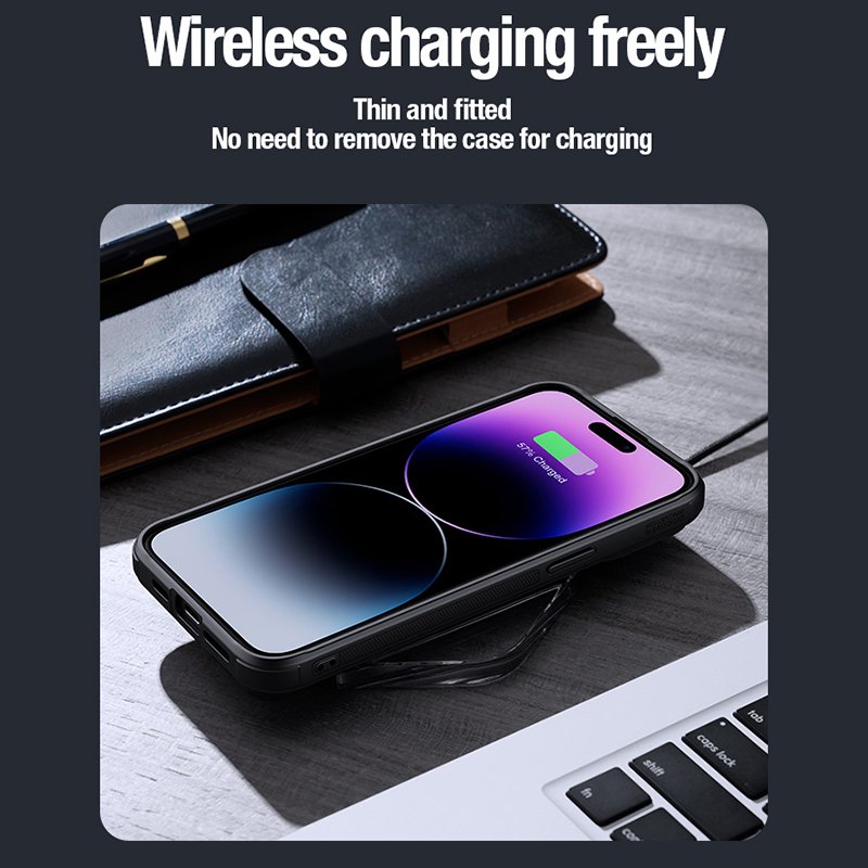- Trådlös laddning: Låt skalet vara på under laddning för bekvämlighet.