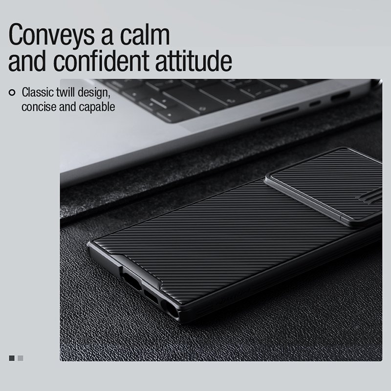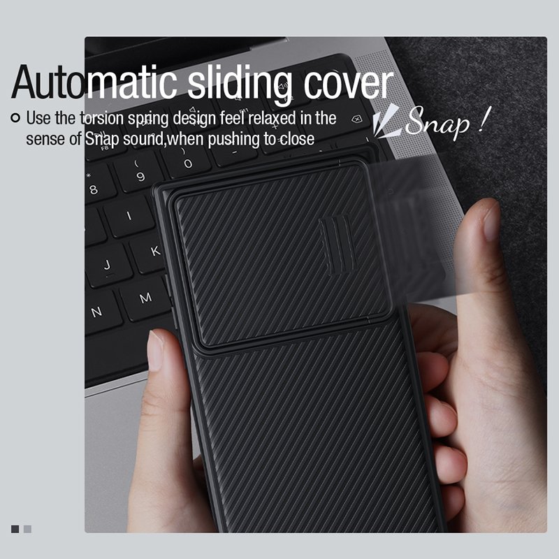 - Skydd för kameran: Glidande kameraskydd som förhindrar repor och skyddar din integritet.