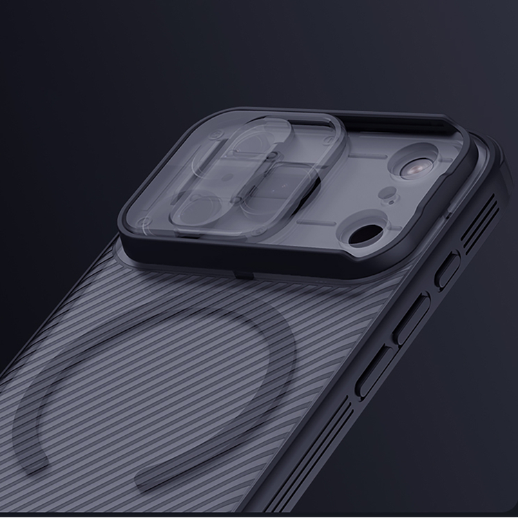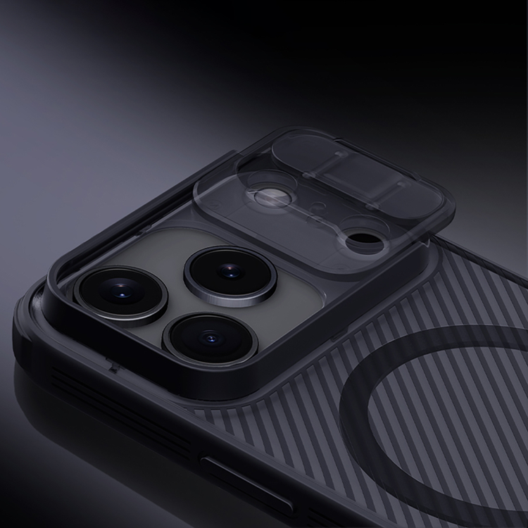 Nillkin CamShield Pro är mobilskalet för dig som ställer höga krav på både skydd och funktionalitet. Skapat för iPhone 17 Pro Max kombinerar detta skal en robust konstruktion med full MagSafe-kompatibilitet, så att din mobil alltid är redo för både vardag och laddning. Den transparenta svarta, halvmatta finishen ger ett tekniskt och elegant uttryck som låter mobilens design synas, samtidigt som den erbjuder ett säkert grepp och ett pålitligt skydd mot stötar, fall och slitage.