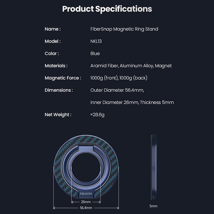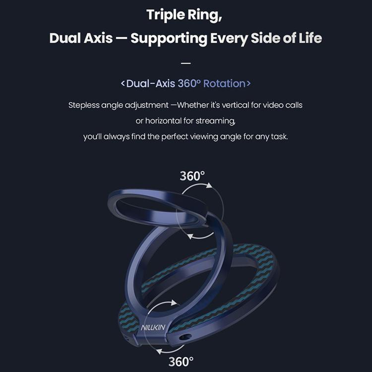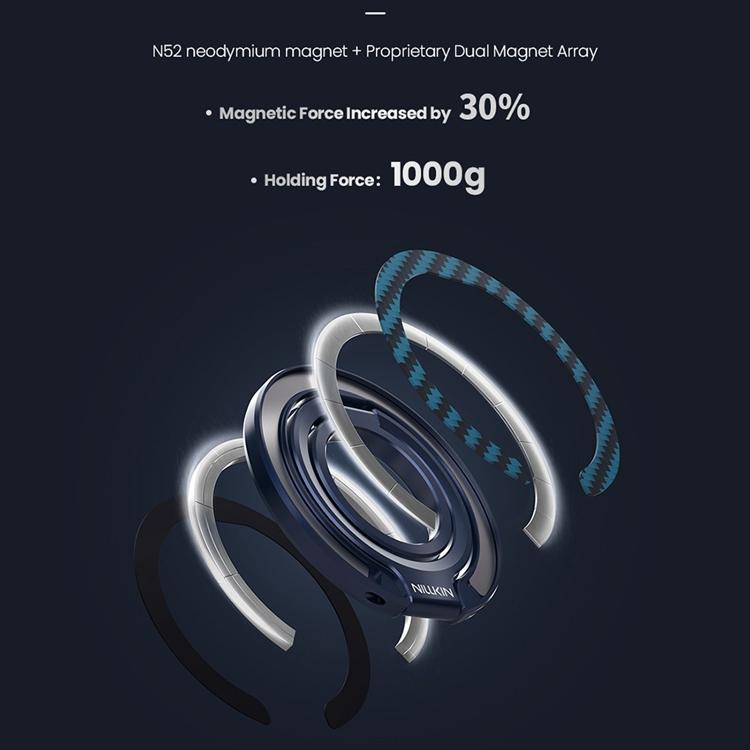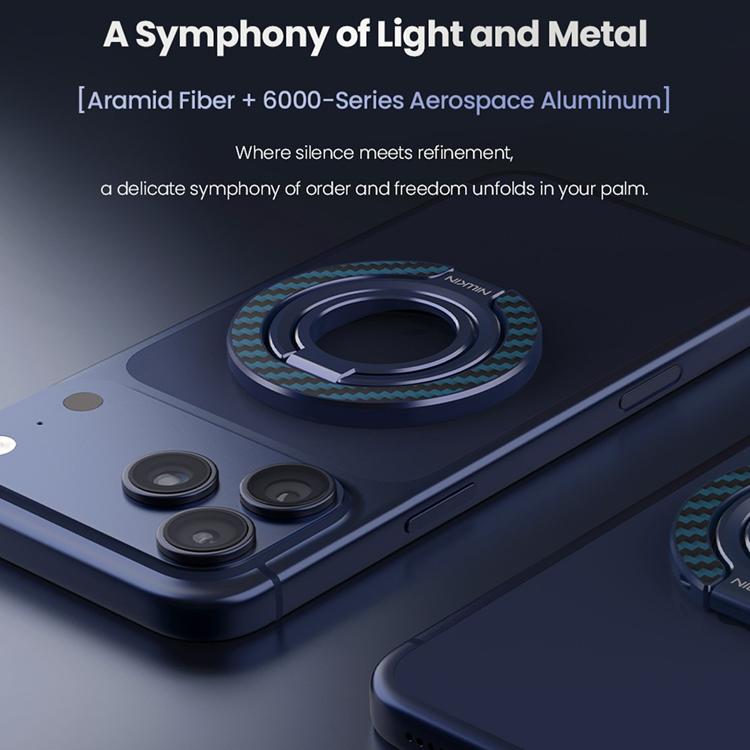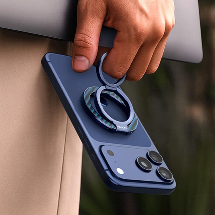 NILLKIN Magnetisk Mobil Ringhållare Kickstand Aramid Fiber Aerospace Aluminiumhållare med Justerbar Vinkel - Blå