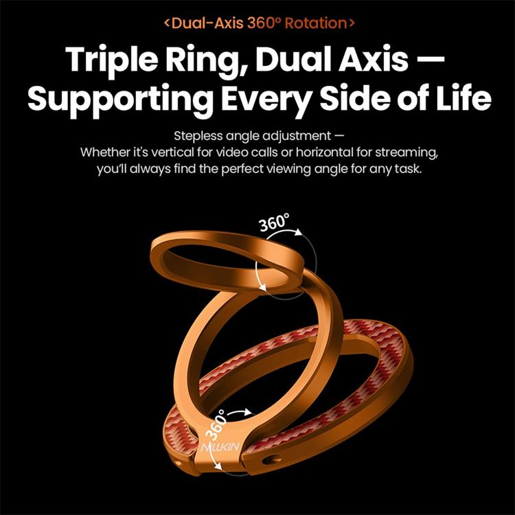 NILLKIN Magnetisk Mobil Ringhållare Kickstand Aramid Fiber Aerospace Aluminiumhållare med Justerbar Vinkel - Orange