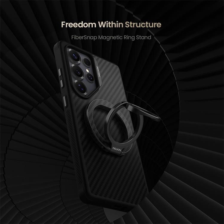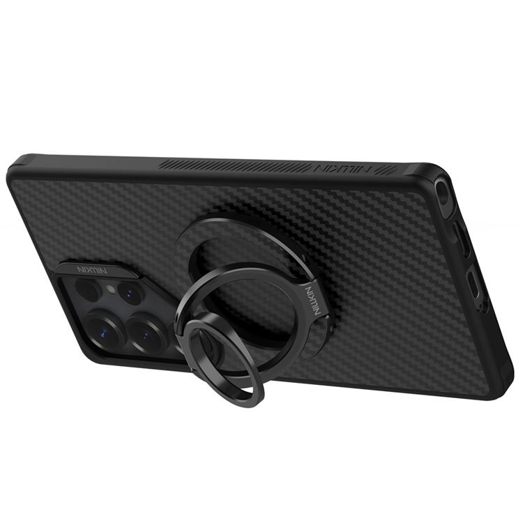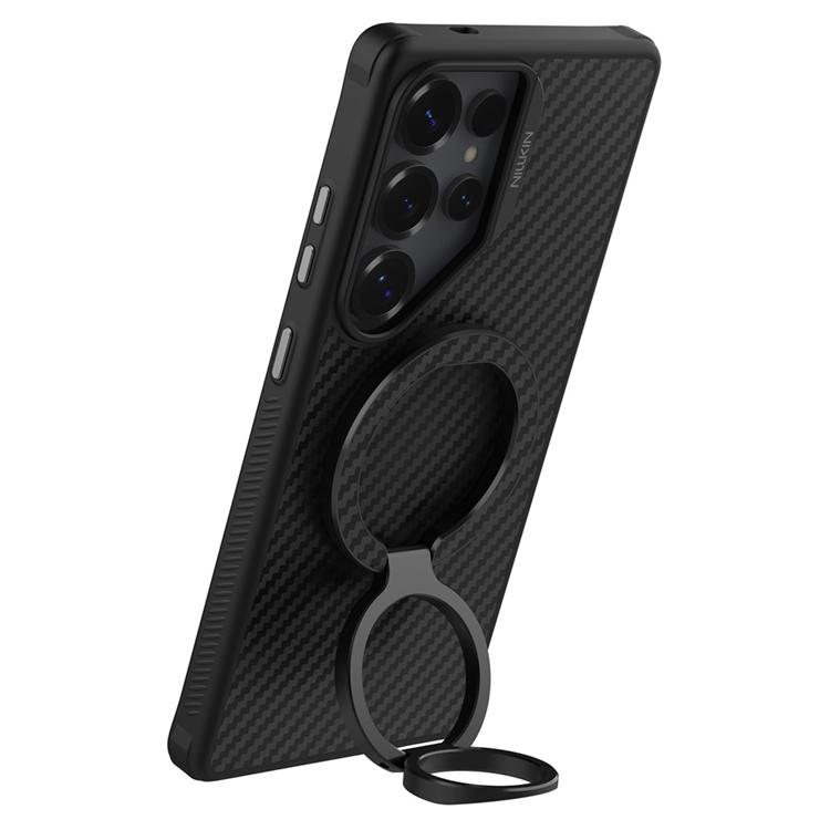 NILLKIN Magnetisk Mobil Ringhållare Kickstand Aramid Fiber Aerospace Aluminiumhållare med Justerbar Vinkel - Svart