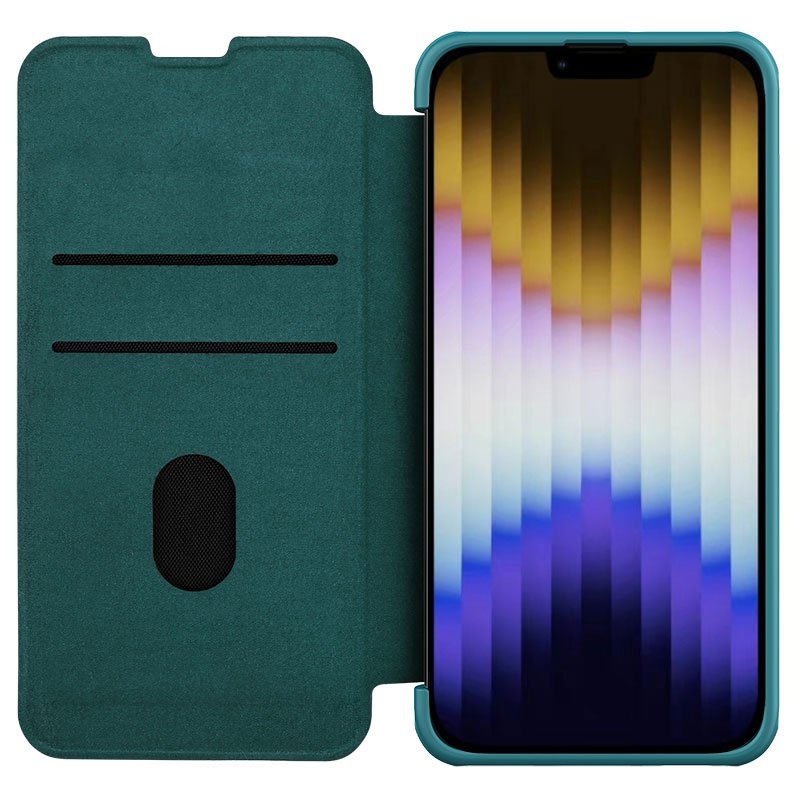 Nillkin telefonfodral är tillverkat av premium PU-läder och erbjuder en elegant och stilren design. Det kombinerar en robust PC-baksida med en mjuk TPU-ram för att skydda din telefon mot repor, fall och stötar utan att öka volymen. Fodralet har även en anpassad skyddskåpa för kameran.