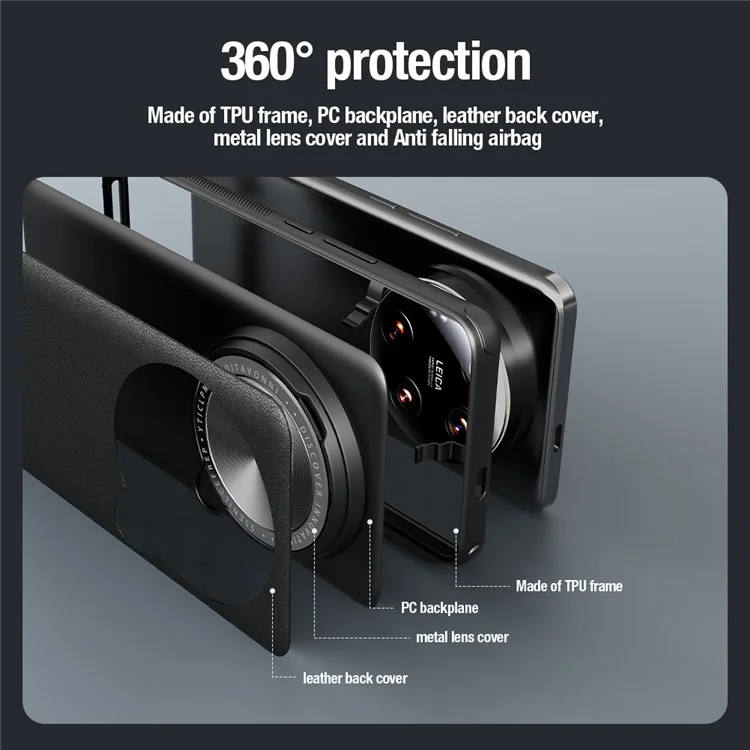 Nillkin Xiaomi 14 Ultra Mobilskal CamShield Prop Läder Linsstativ - Svart