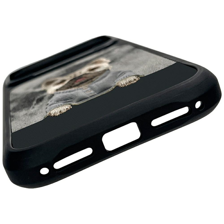 Det tredimensionella, broderade hundmotivet ger din mobil ett personligt och exklusivt uttryck. Ett mobilskal som verkligen sticker ut. -