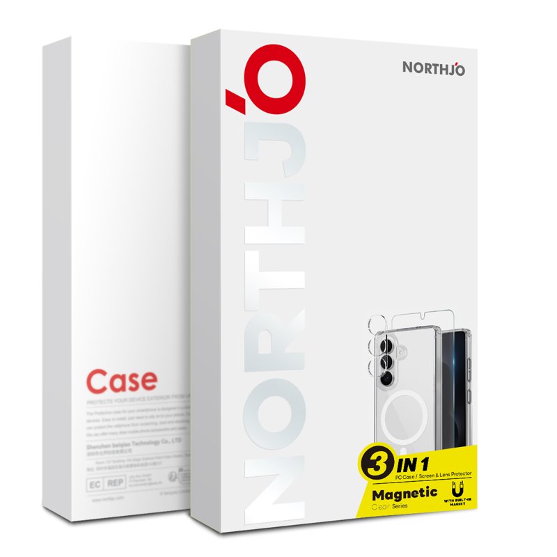 NORTHJO erbjuder ett komplett skydd för din Samsung Galaxy S26 Ultra med sitt magnetiska fodral. Detta set innehåller ett fodral, en skärmskydd och en linsfilm. Med fokus på både stil och säkerhet skyddar det din enhet mot stötar och repor. Njut av en elegant design utan att kompromissa med skyddet.