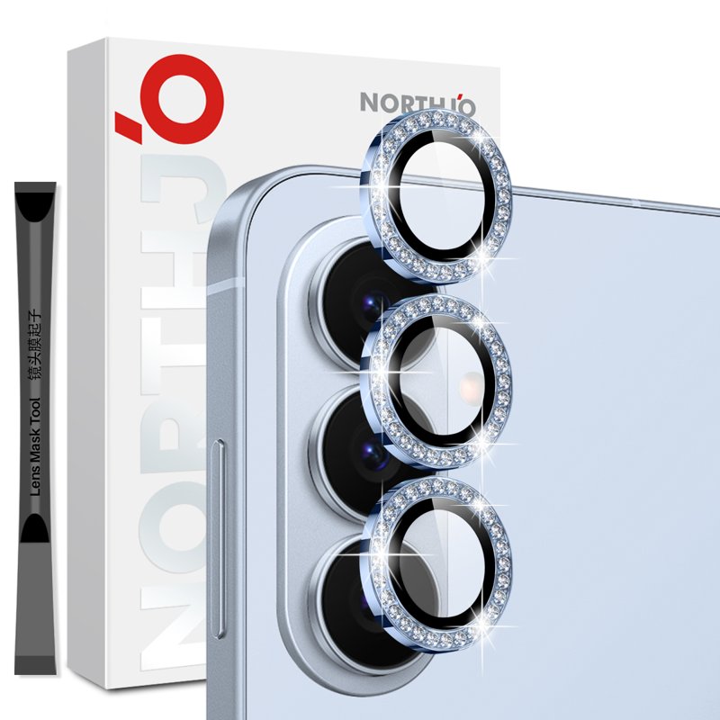 NORTHJO för Samsung Galaxy S26 erbjuder en kamera lins skydd med en gnistrande rhinestone-ring. Denna skyddande linsfilm i härdat glas ger både stil och säkerhet. Skydda din kamera med elegans och hållbarhet. Perfekt för den som vill ha både funktion och design.