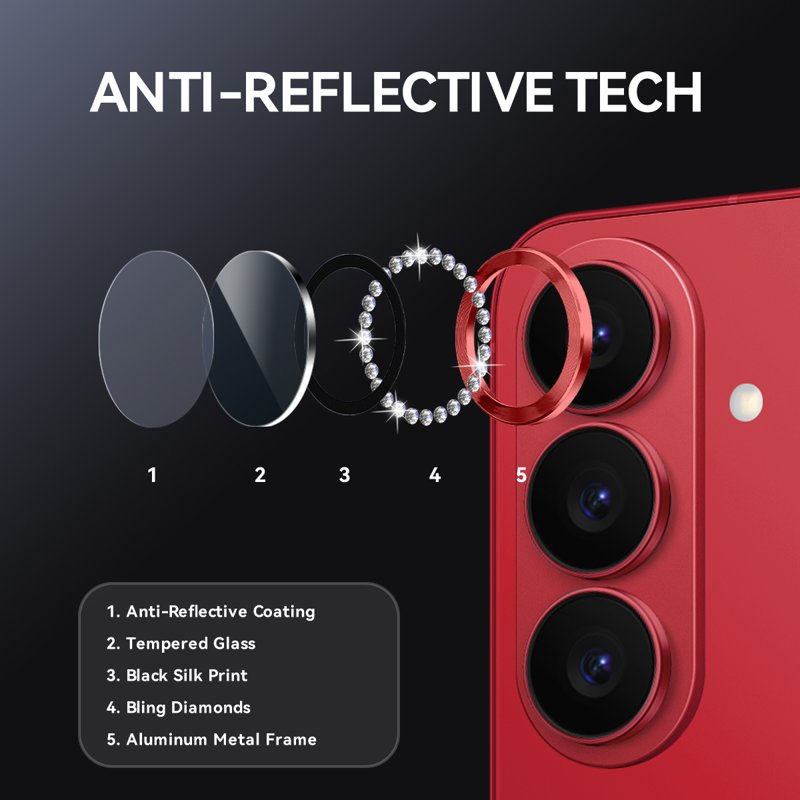 NORTHJO för Samsung Galaxy S26 kameralinsskydd med rhinestones ger ett elegant skydd för din telefon. Med sin glittrande design och överlägsna skydd säkerställer den att din kameralinse förblir i perfekt skick. Den är enkel att installera och ger en klar bildkvalitet. Skydda din telefon med stil och funktionalitet.