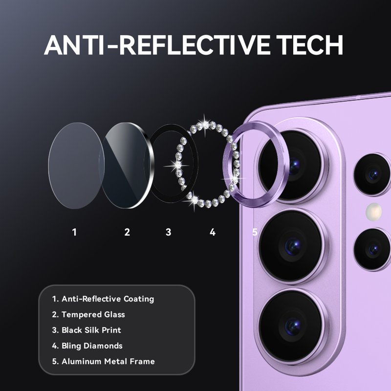 NORTHJO för Samsung Galaxy S26 Ultra Kamera Linsskydd med Rhinestone Ring i Tempererat Glas erbjuder både stil och skydd. Denna produkt kombinerar en elegant design med överlägsen hållbarhet. Skydda din kameralins och ge din telefon en lyxig touch med detta unika tillbehör.