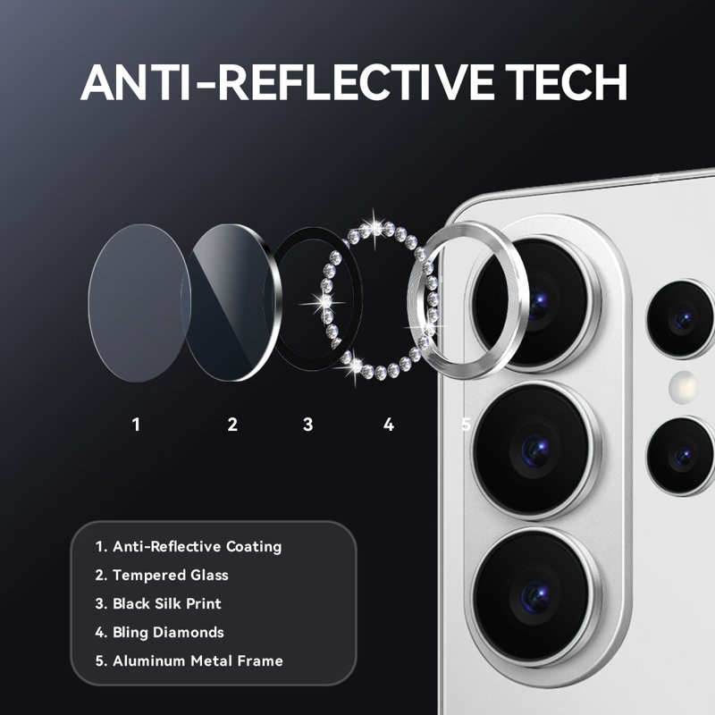 NORTHJO för Samsung Galaxy S26 Ultra Kamera Linsskydd med Rhinestone Ring i Tempererat Glas erbjuder både stil och skydd. Med en glittrande design och överlägsen hållbarhet skyddar detta linsskydd din kamera från repor och stötar. Det är enkelt att installera och ger en kristallklar bildkvalitet. Uppgradera din telefon med detta eleganta tillbehör.