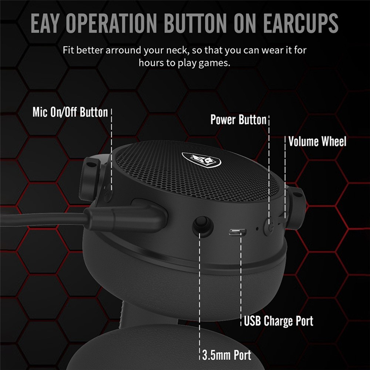 Headsetet är designat för långa spelpass, med ergonomiskt formade öronkåpor som ligger bekvämt runt nacken när du tar en paus, samt praktiska knappar på kåporna för snabb hantering. Den kraftfulla 1100 mAh batterikapaciteten ger lång användningstid så att du kan spela timme efter timme utan att ladda. Det är dessutom oerhört enkelt att komma igång – bara anslut USB-adaptern och börja spela direkt. För dig som vill ha ett headset som levererar både komfort och funktionalitet är detta ett riktigt starkt val.