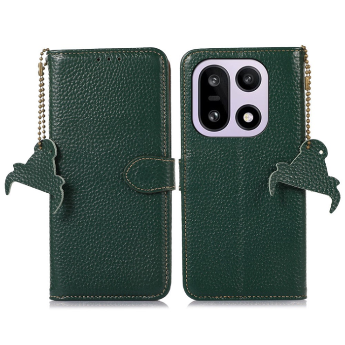 OnePlus 15 5G Plånboksfodral Äkta Läder RFID Blocking Litchi Texture - Grön