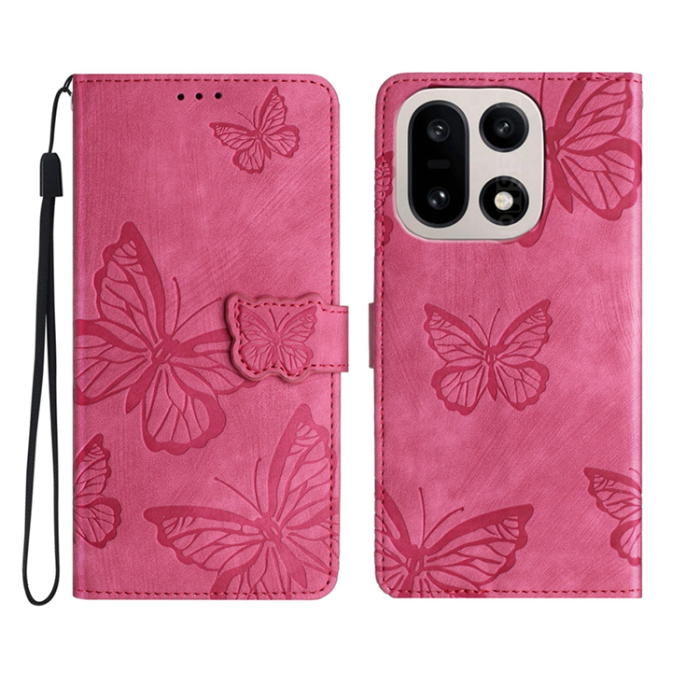 OnePlus 15 5G Plånboksfodral Butterfly Design Skin-Touch Läder - Ros