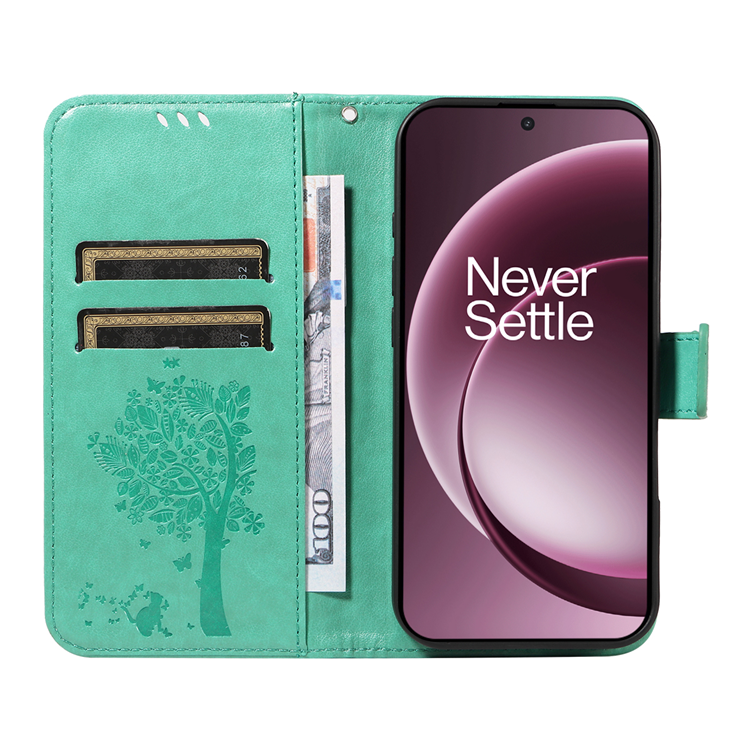 OnePlus 15 5G Plånboksfodral Cat Tree Pattern Läder med Stativ - Grön