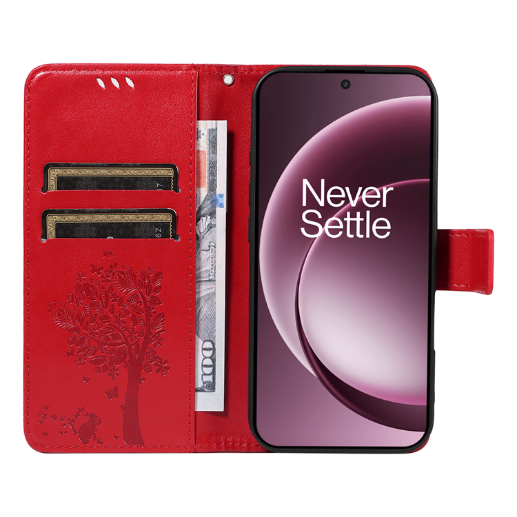 OnePlus 15 5G Plånboksfodral Cat Tree Pattern Läder med Stativ - Röd
