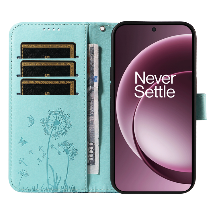 OnePlus 15 5G Plånboksfodral Dandelion Imprint Konstläder (Grön)