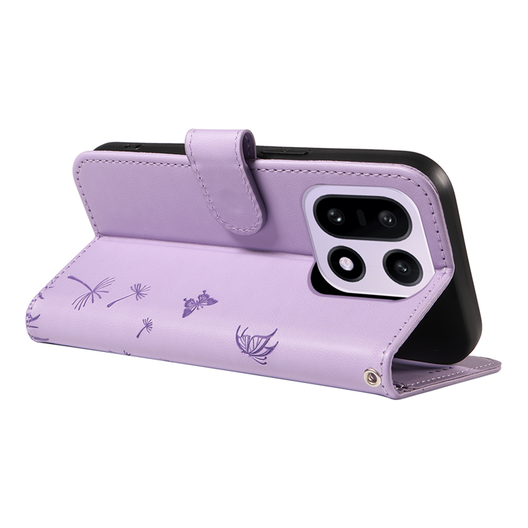 OnePlus 15 5G Plånboksfodral Dandelion Imprint Läder med Rem - Lila