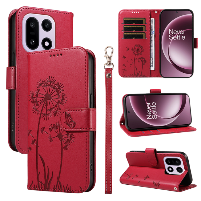 OnePlus 15 5G Plånboksfodral Dandelion Imprint Läder (Röd)
