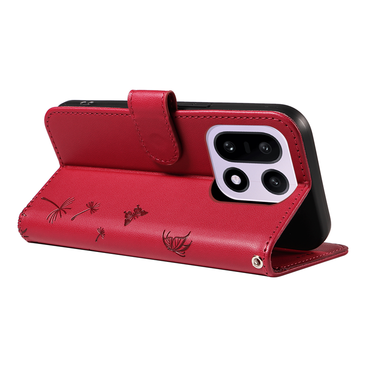 OnePlus 15 5G Plånboksfodral Dandelion Imprint Läder med Rem - Röd