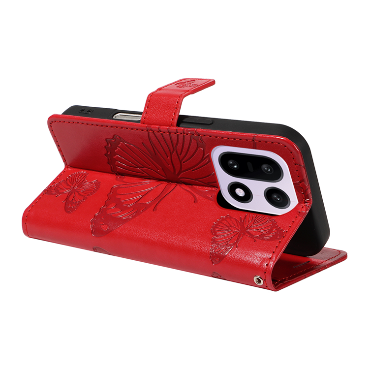 OnePlus 15 5G Plånboksfodral Floral Butterfly Imprinted Läder Stativ - Röd