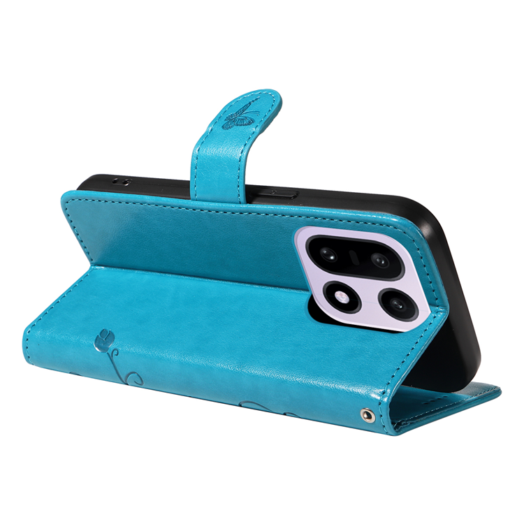 OnePlus 15 5G Plånboksfodral Flower Pattern PU Läder med Rem - Blå
