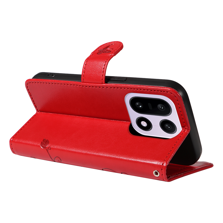 OnePlus 15 5G Plånboksfodral Flower Pattern PU Läder med Rem - Röd