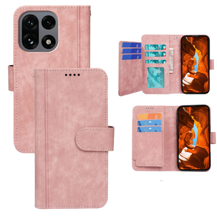 OnePlus 15 5G Plånboksfodral Line Pattern Läder - Roséguld