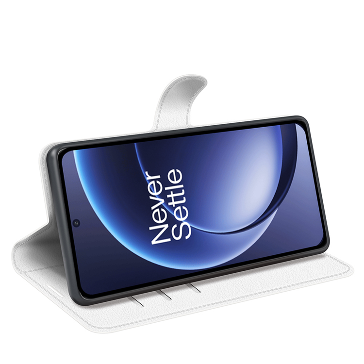 OnePlus 15 5G Plånboksfodral Litchi Texture Shockproof Läder - Vit
