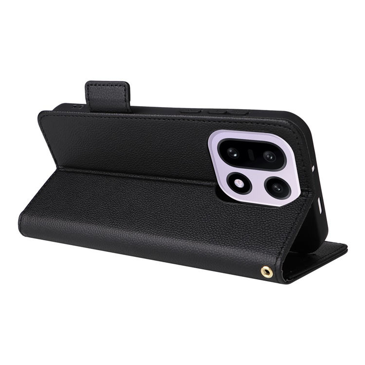 OnePlus 15 5G Plånboksfodral Litchi Texture Läder med handledsrem - Svart