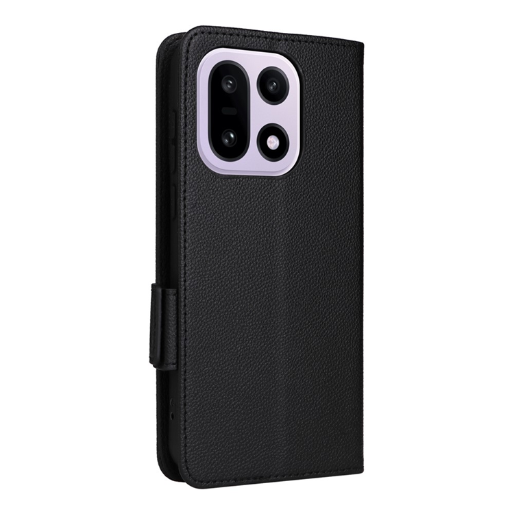 OnePlus 15 5G Plånboksfodral Litchi Texture Konstläder (Svart)