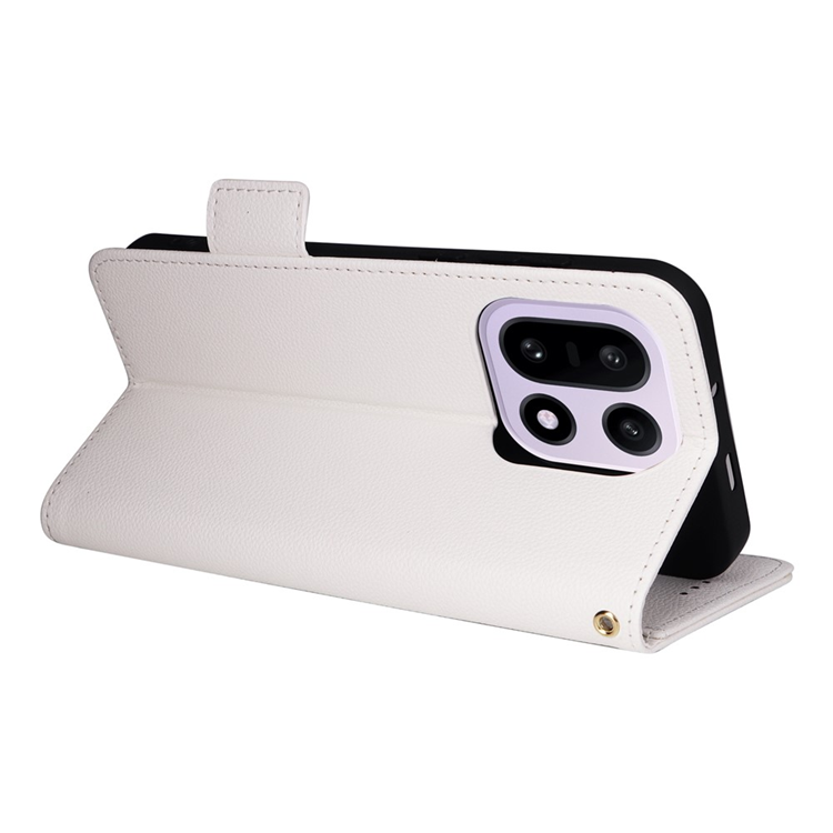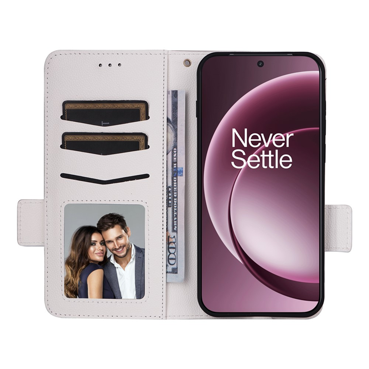 OnePlus 15 5G Plånboksfodral Litchi Texture Läder med handledsrem - Vit