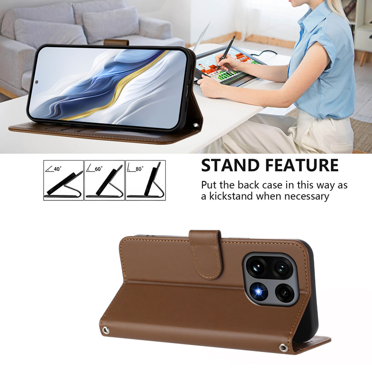 OnePlus 15 5G Plånboksfodral PU Läder med handledsrem - Brun