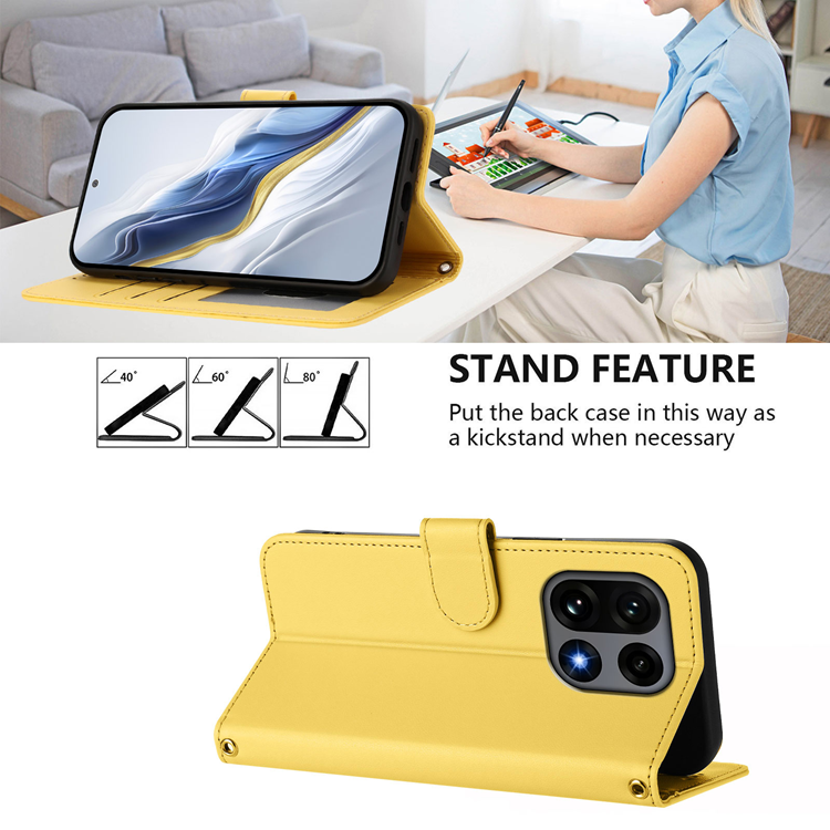 OnePlus 15 5G Plånboksfodral PU Läder med handledsrem - Gul