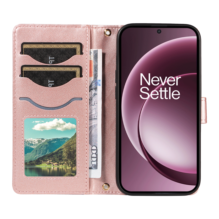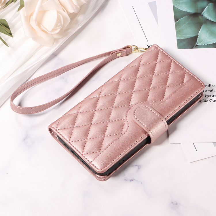 OnePlus 15 5G Plånboksfodral Rhombus Läder med Rem - Roséguld