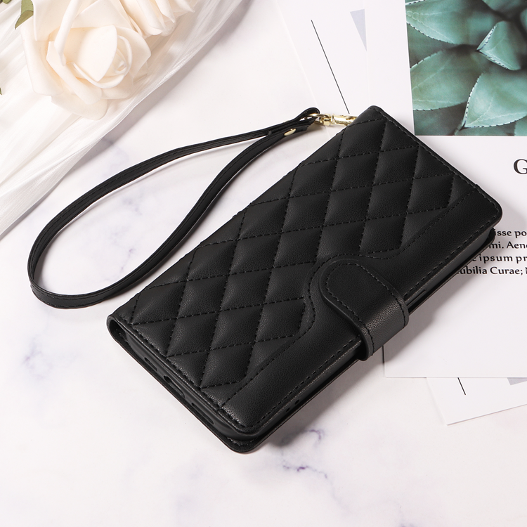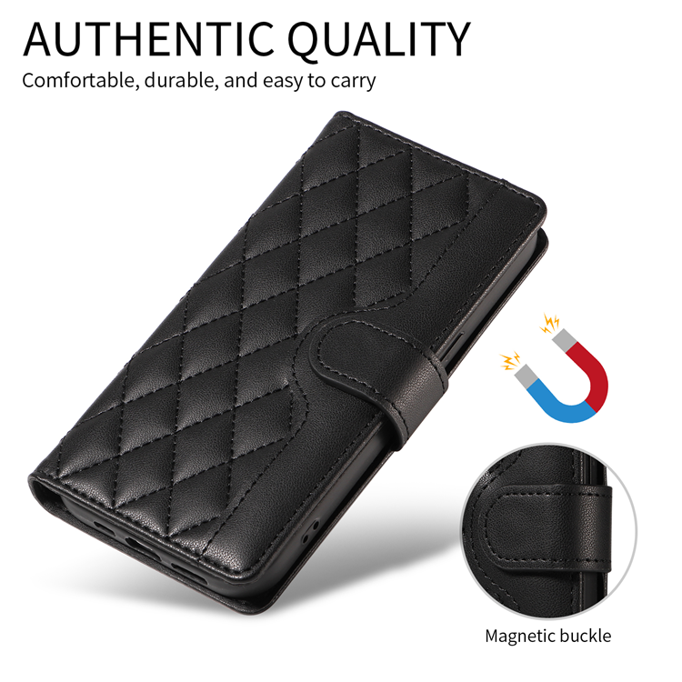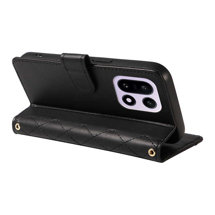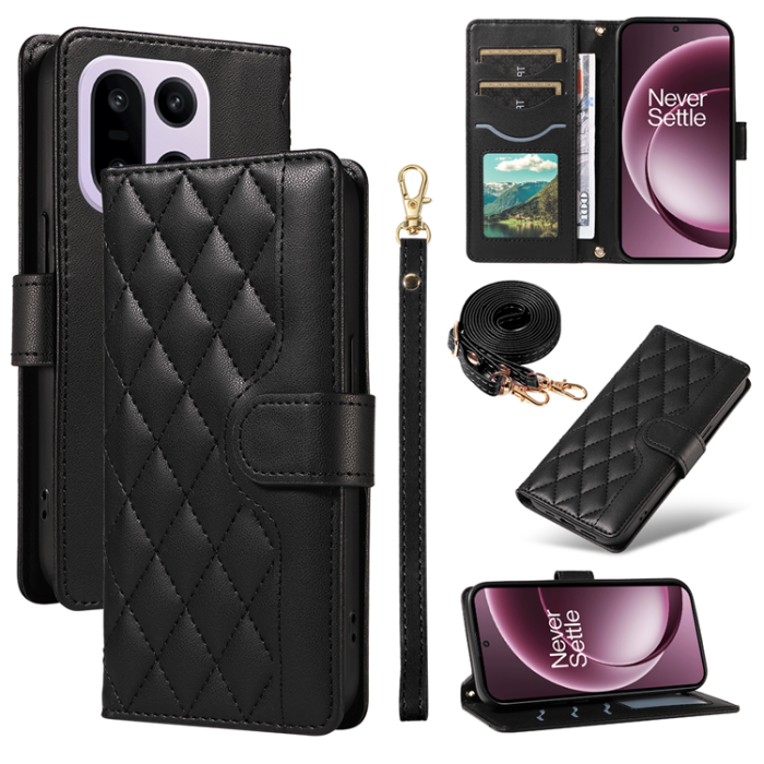 OnePlus 15 5G Plånboksfodral Rhombus Läder med Rem - Svart