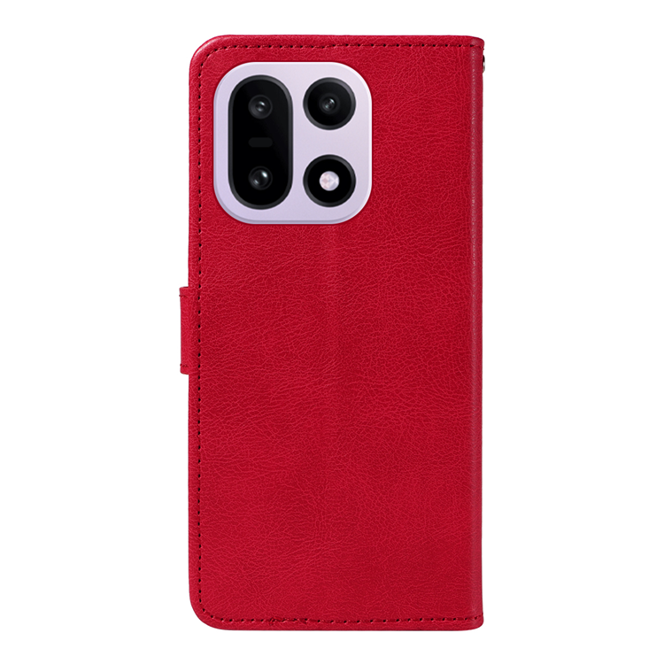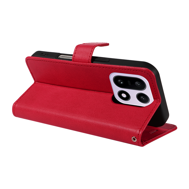 OnePlus 15 5G Plånboksfodral Solid Färg Läder med Rem - Röd