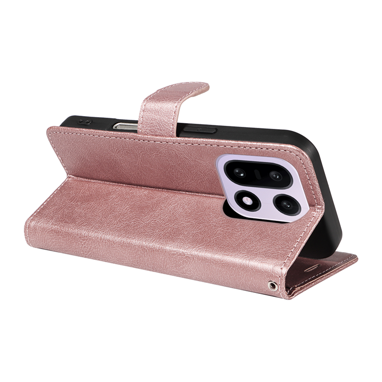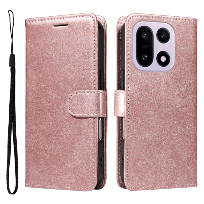 OnePlus 15 5G Plånboksfodral Solid Färg Läder med Rem - Roséguld