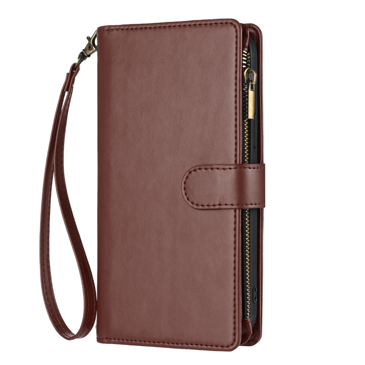 OnePlus 15 5G Plånboksfodral Zipper Shockproof med handledsrem - Brun