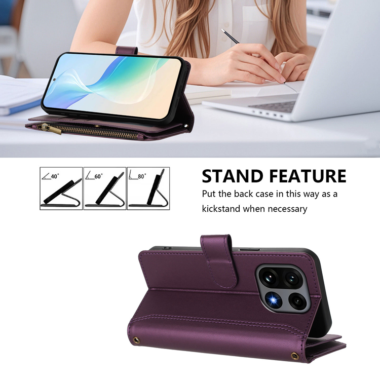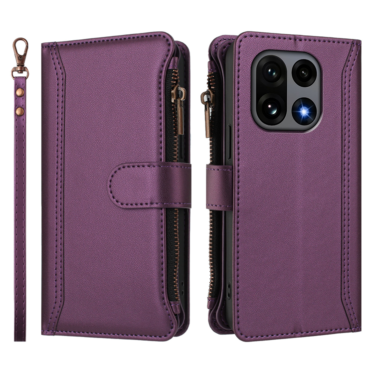 OnePlus 15 5G Plånboksfodral Zipper Wallet Läder med handledsrem - Lila