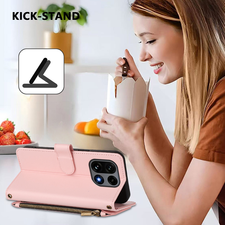 Skalet fungerar även som en komplett plånbok och förenklar din vardag genom att samla allt viktigt på ett och samma ställe. Med sex kortplatser, ett dragkedjefack och RFID-blockering är dina kort både organiserade och skyddade mot obehörig skanning. Det integrerade stativet gör videos och videosamtal bekväma och handsfree, och den matchande handremmen ger extra säkerhet när du är på språng. Magnetstängningen håller allt säkert på plats, och trådlös laddning fungerar utan att du behöver ta av mobilskalet – smidigt, tryggt och genomtänkt.