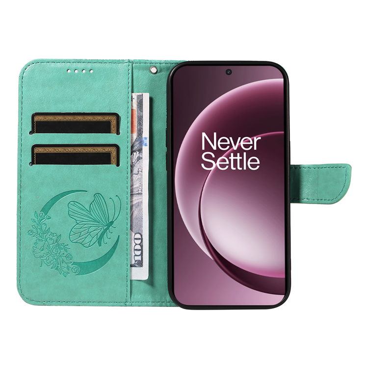 OnePlus 15 5G Plånboksfodral Butterfly Pattern PU Läder - Grön