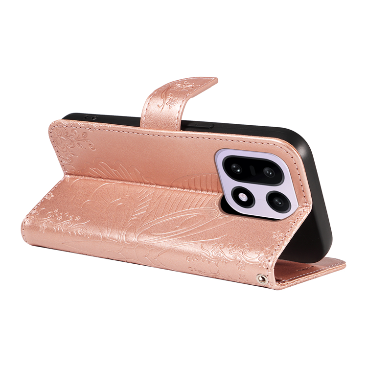 OnePlus 15 5G Plånboksfodral Butterfly Pattern PU Läder - Roséguld