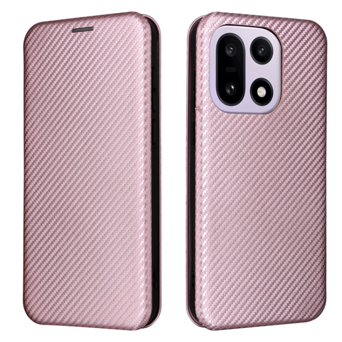 OnePlus 15 Plånboksfodral Carbon Fiber Drop-Proof Konstläder (Roséguld)