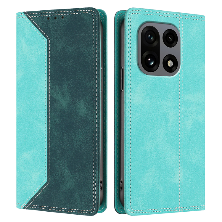 OnePlus 15 5G Plånboksfodral Färg Splicing RFID Blocking Skin Touch Läder - Grön/Mörkgrön