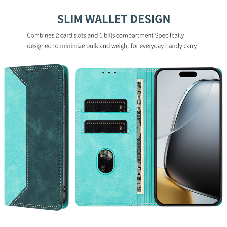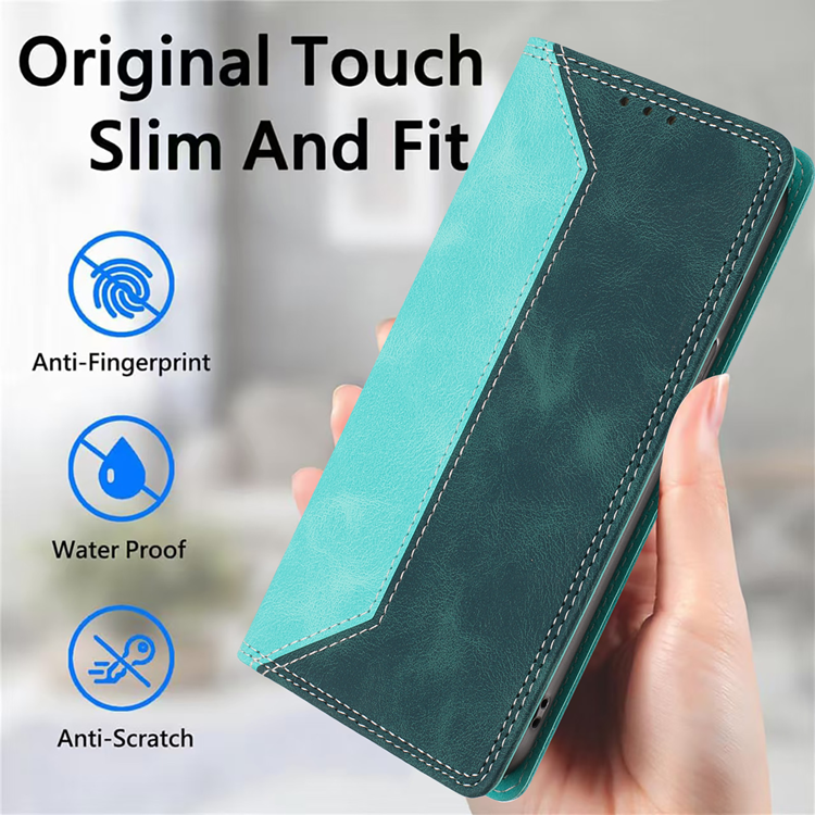 Ge din mobil både stil och funktion i ett enda genomtänkt mobilfodral. Den lyxiga kombinationen av PU-läder och TPU med en mjuk skin-touch-känsla gör att skalet ligger bekvämt i handen samtidigt som det ger ett pålitligt skydd i vardagen. Den trendiga färgblock-designen ger din mobil en modern och iögonfallande look som skiljer sig från mängden – perfekt för dig som vill ha ett skal som känns både praktiskt och snyggt.