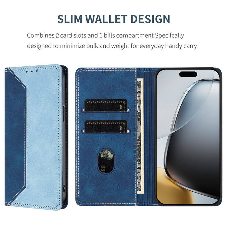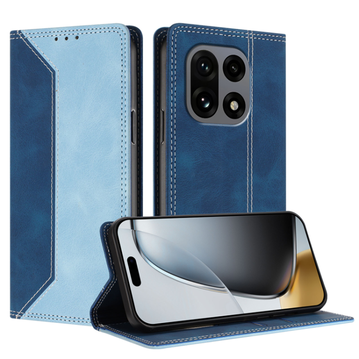 OnePlus 15 Plånboksfodral Färg Splicing RFID (Mörkblå/Blå)